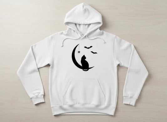 Black Cat on Crescent Moon Halloween Silhouette SVG & PNG