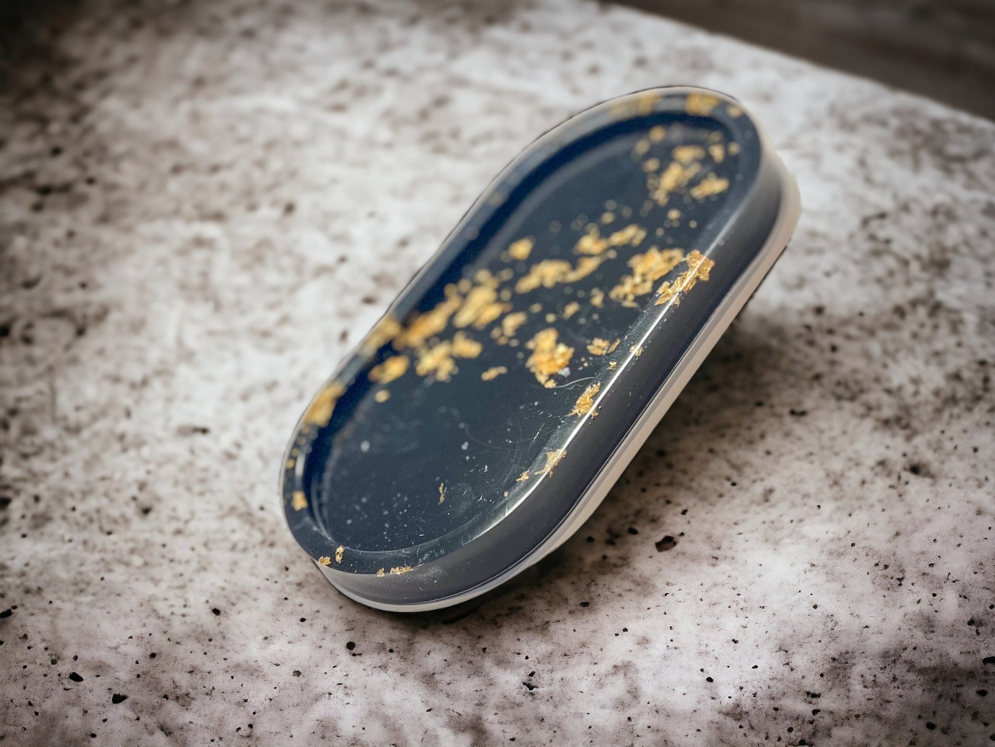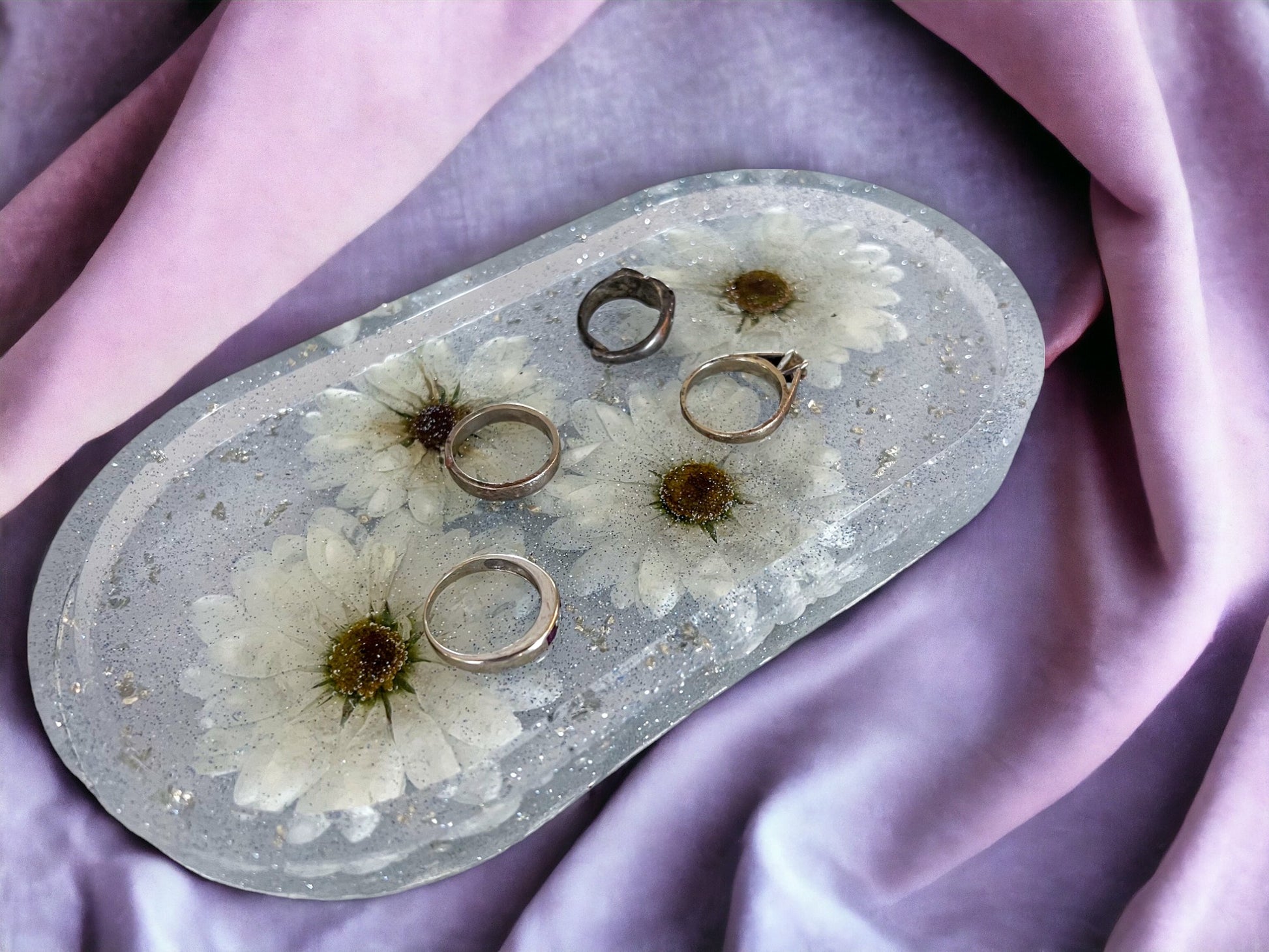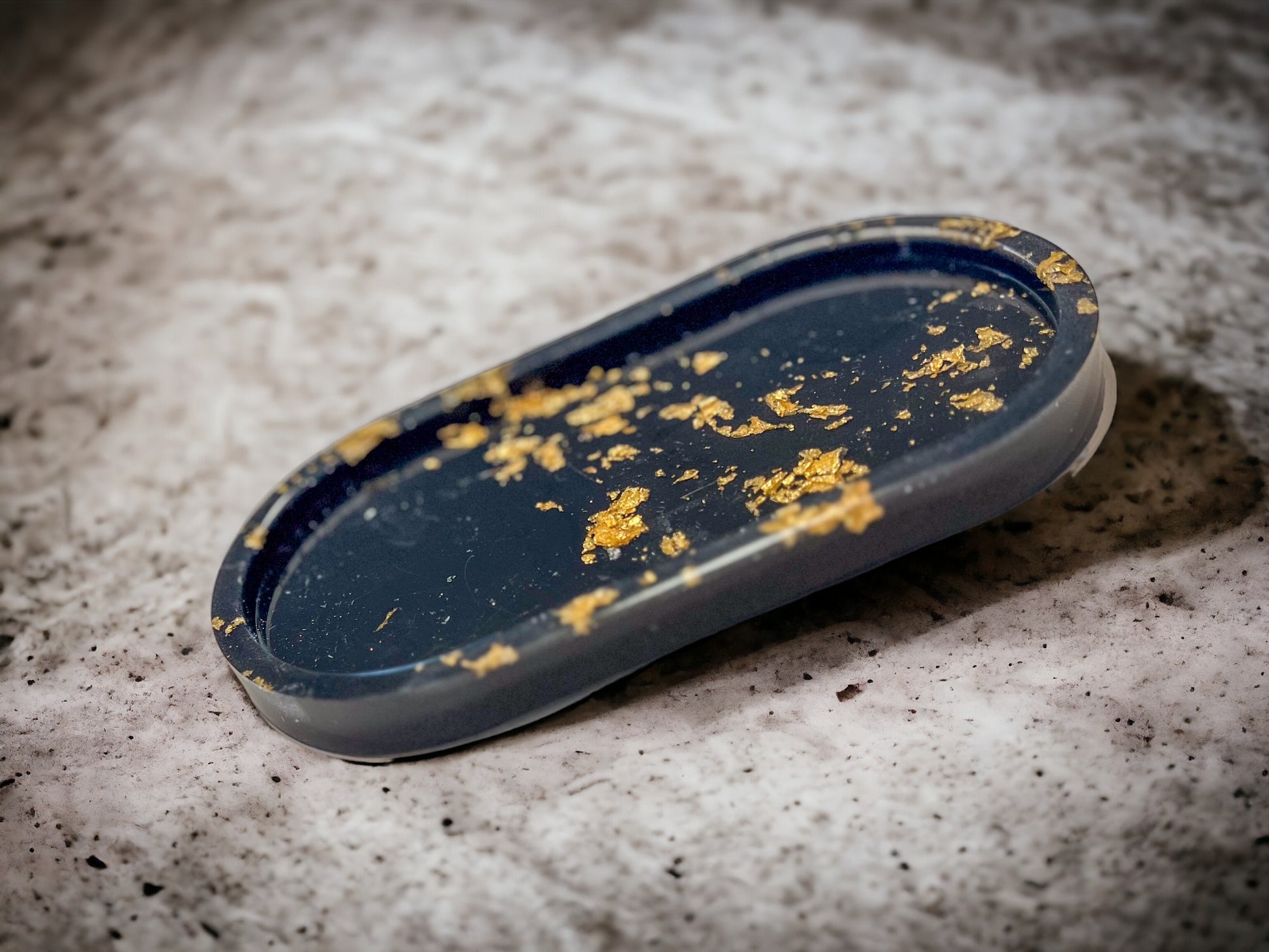Trinket Dish created from resin. These dishes have inclusions of various variety from gold flake to real dried flowers.