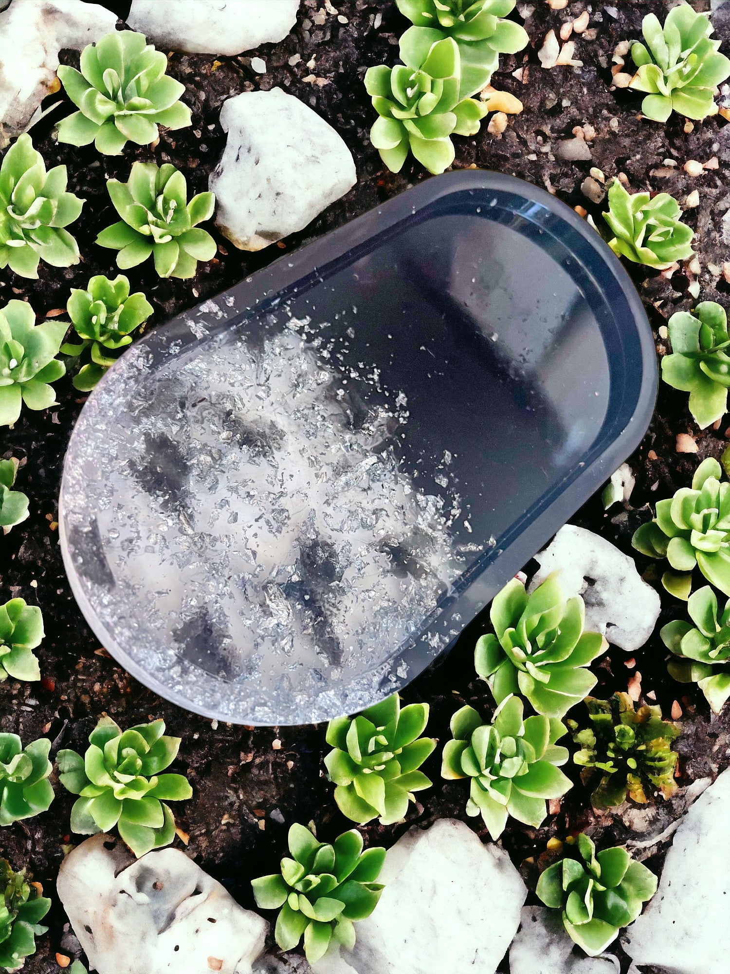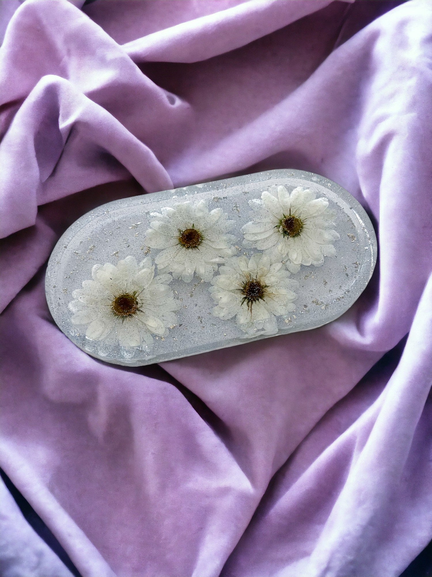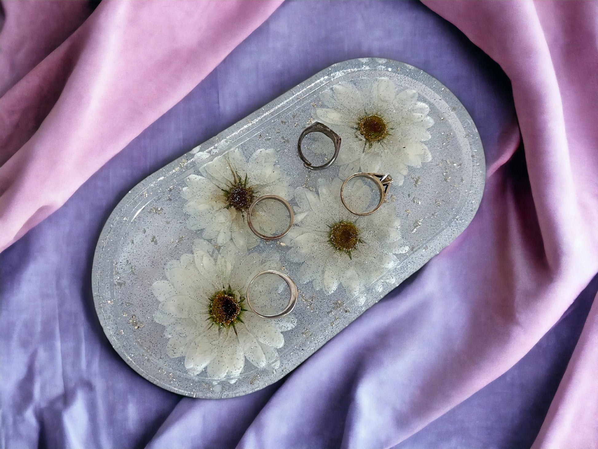 Trinket Dish created from resin. These dishes have inclusions of various variety from gold flake to real dried flowers.