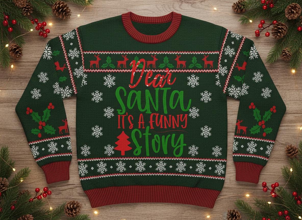 Make this Christmas one to laugh about — because with this design, even Santa will understand it’s “a funny story”! 🎅🎄✨