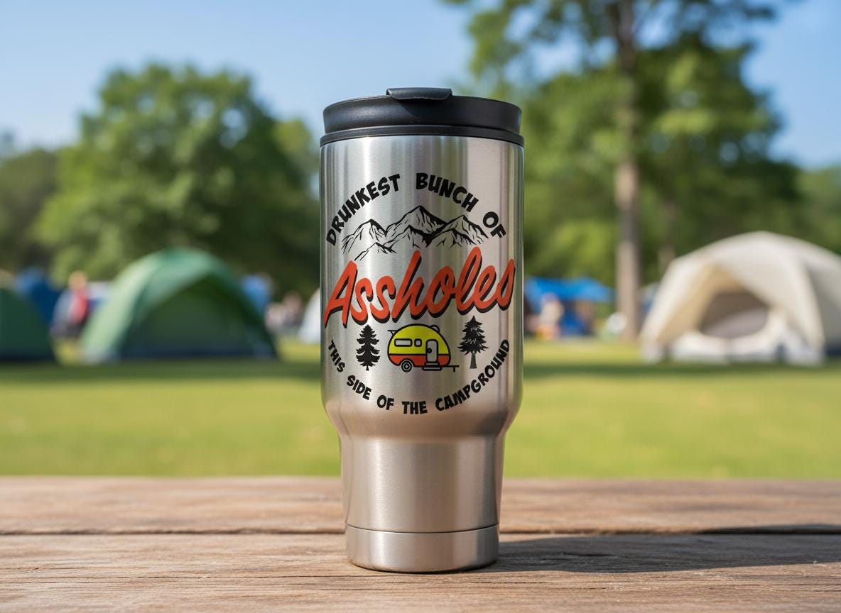 Bring on the laughs around the fire with this bold “Drunkest Bunch of Assholes” digital file — perfect for camping trips, buddy get-togethers, and anyone with a sense of humour about their outdoor antics. This listing is for a digital download only — no physical product will be shipped.