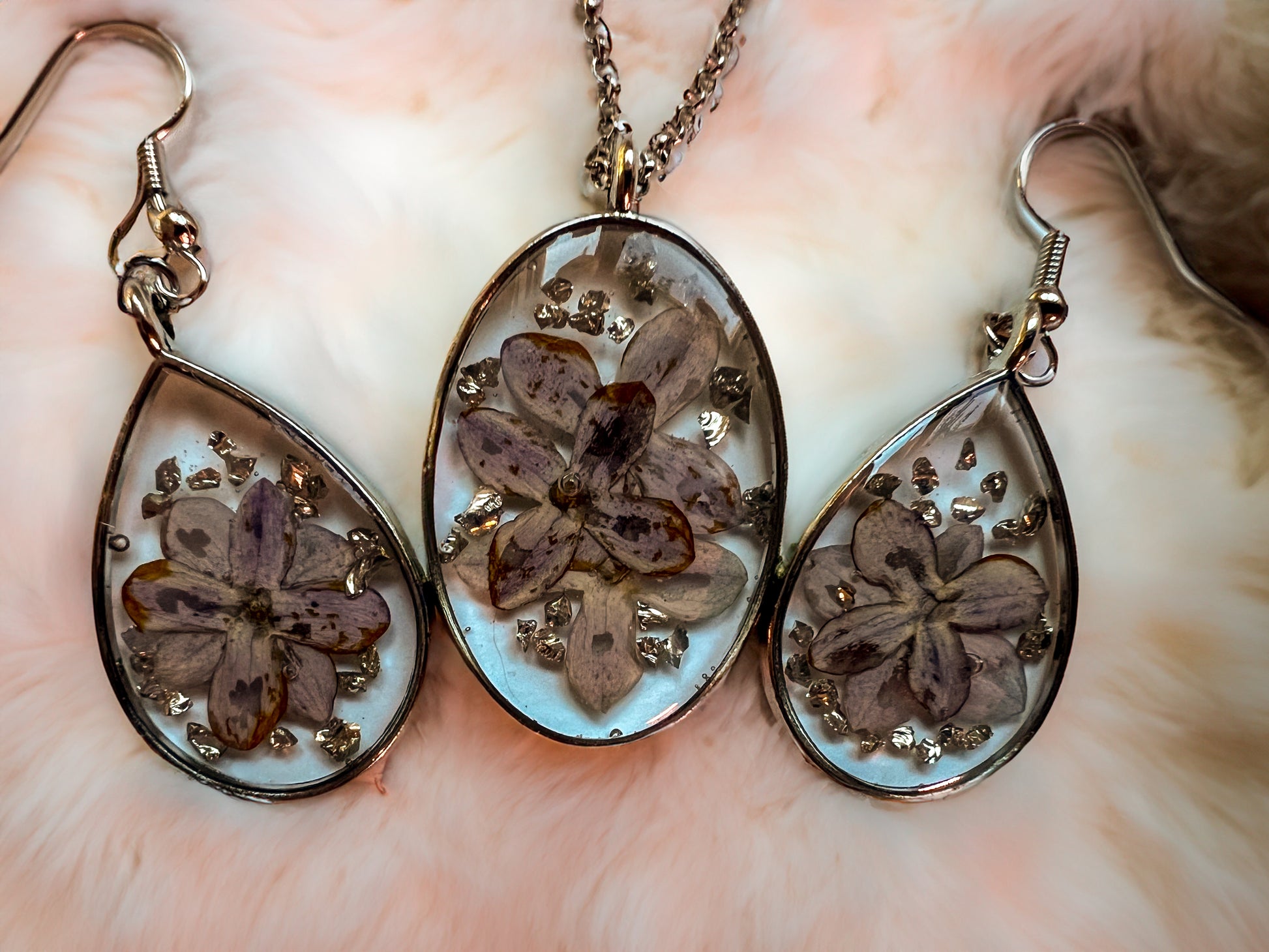 Lilac Pendant and Earring Set | Handmade Jewelry | Resin Craft