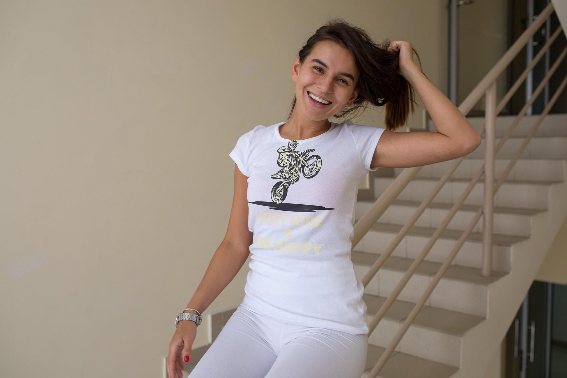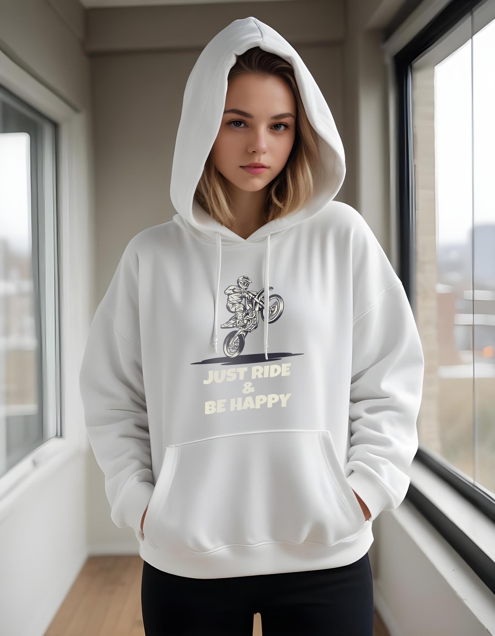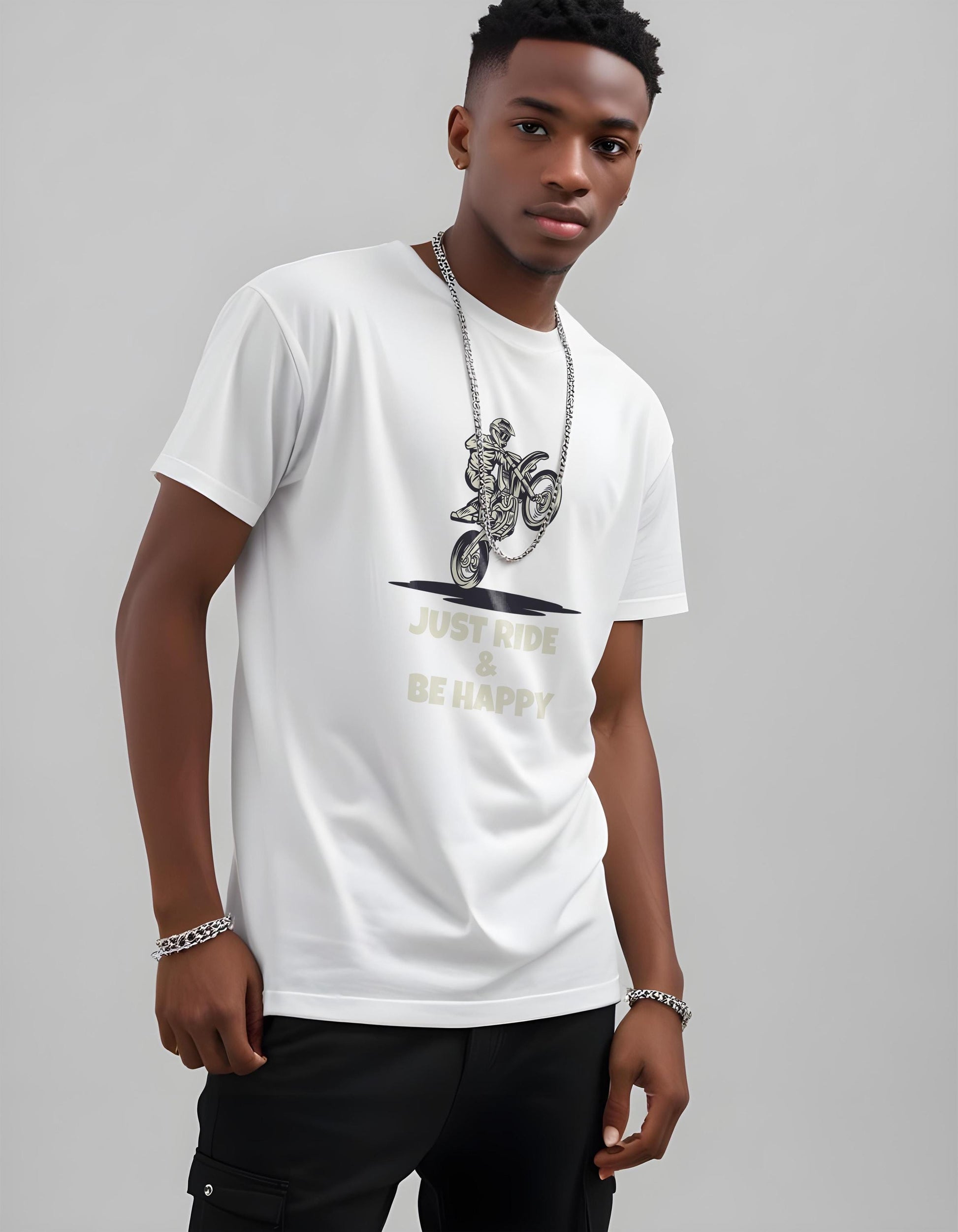 Keep your wheels turning and your spirits high with this “Just Ride & Be Happy” design — the perfect expression of freedom, fun, and the thrill of two wheels! 🏍️✨
