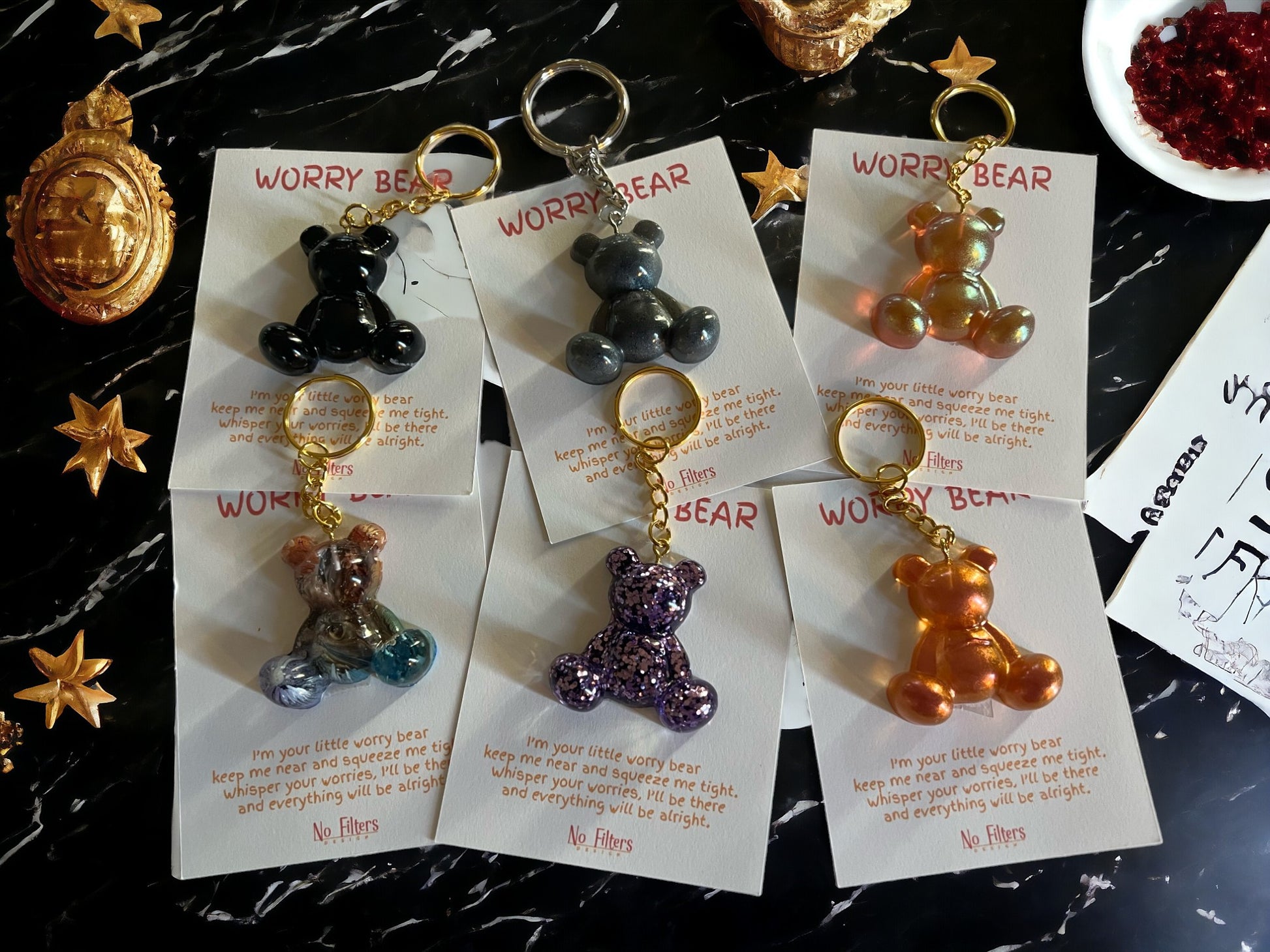 Worry Bear Key Chains | Resin Craft | Comfort Bear | Fidget Bear | Key Chain